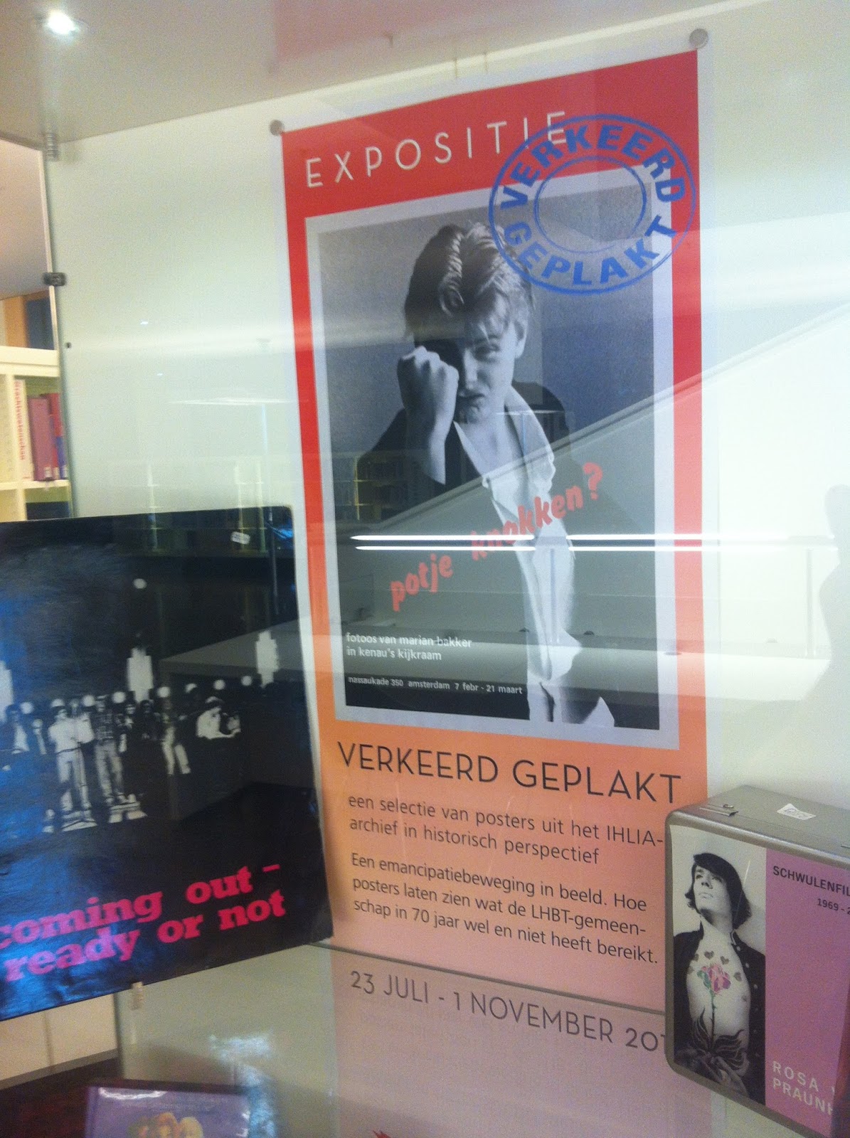 IHLIA verzamelt alles op het gebied van LHBT-erfgoed, ook posters. Van deze collectie zijn 7000 grote en kleine posters beschreven, ontsloten en gedigitaliseerd. De tentoonstelling Verkeerd geplakt toont een selectie uit dit kostbare bezit en richt zich op de demonstraties, protesten en manifestaties uit de afgelopen zeventig jaar.